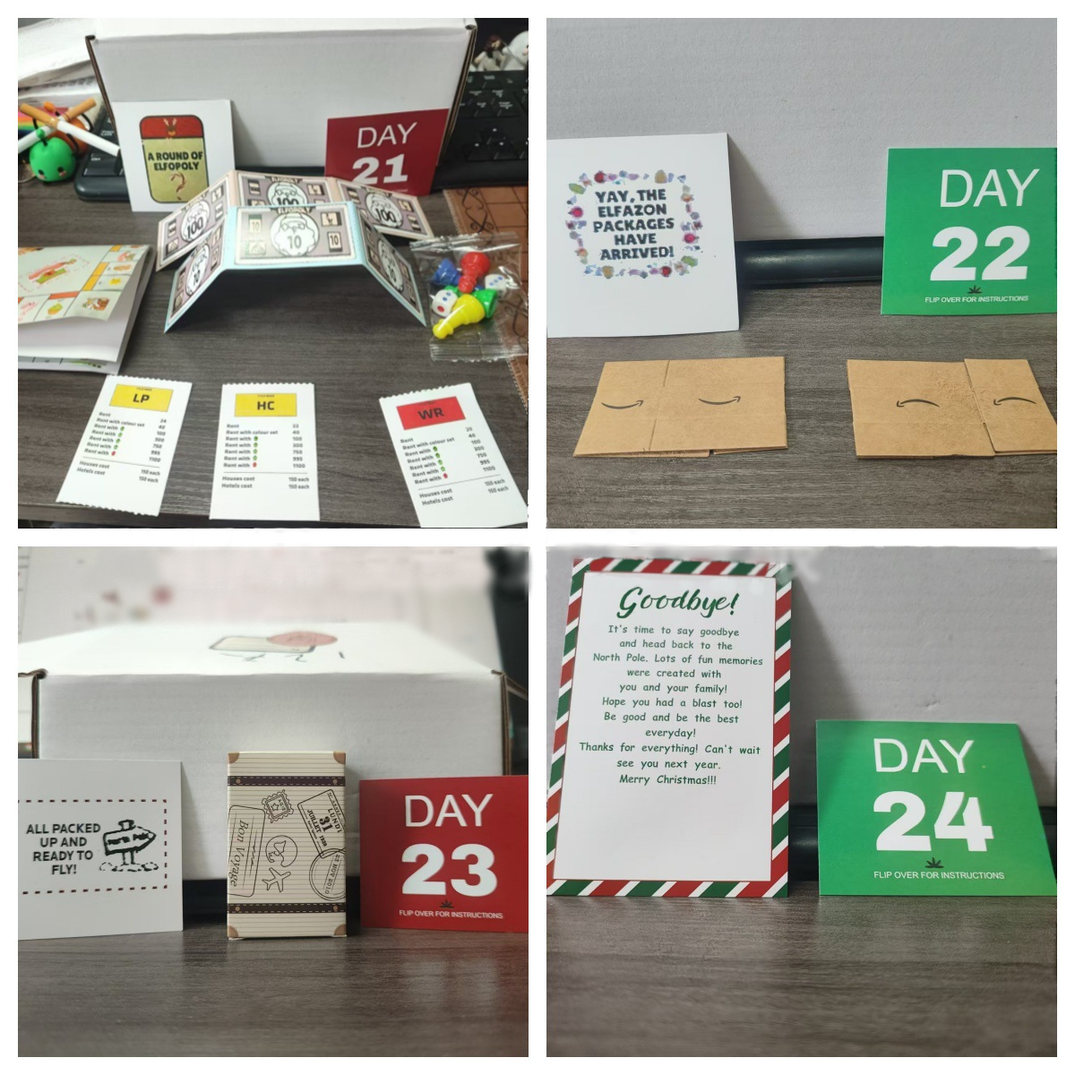 Farewell card for the elf’s trip back to the North Pole.